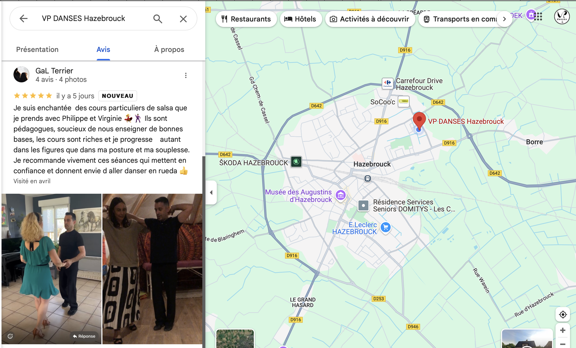Le tout premier avis sur GOOGLE a été publié par notre élève ambassadrice Gaëlle ! Merci pour ta confiance et pour ce premier avis élogieux ! VP DANSES est ravie