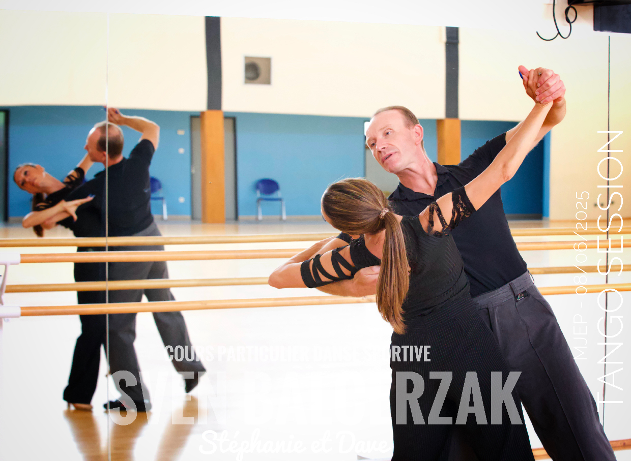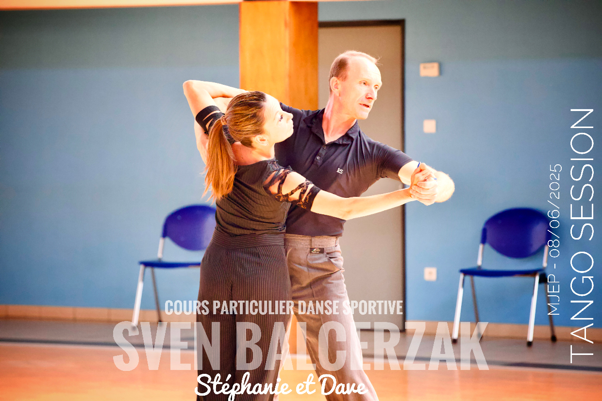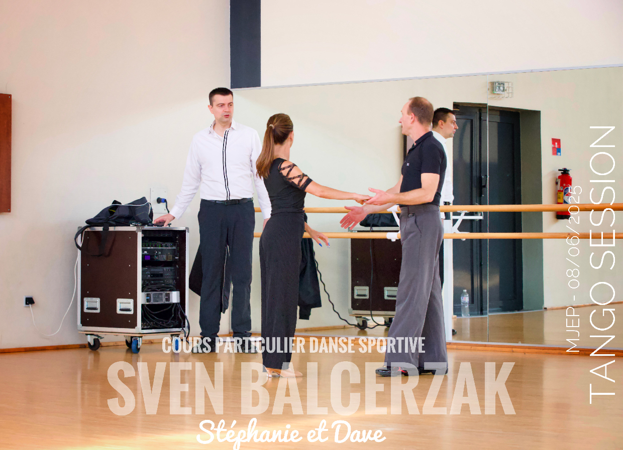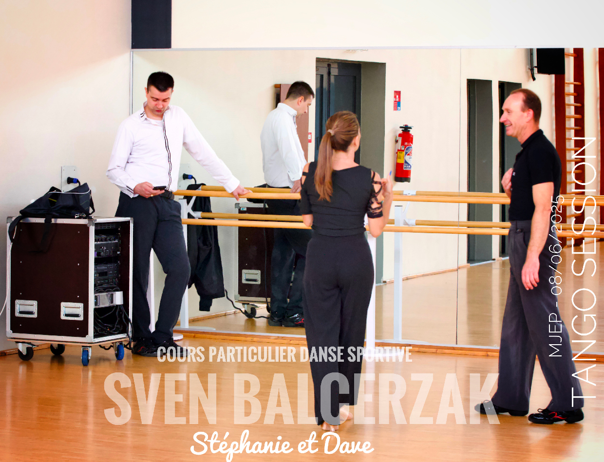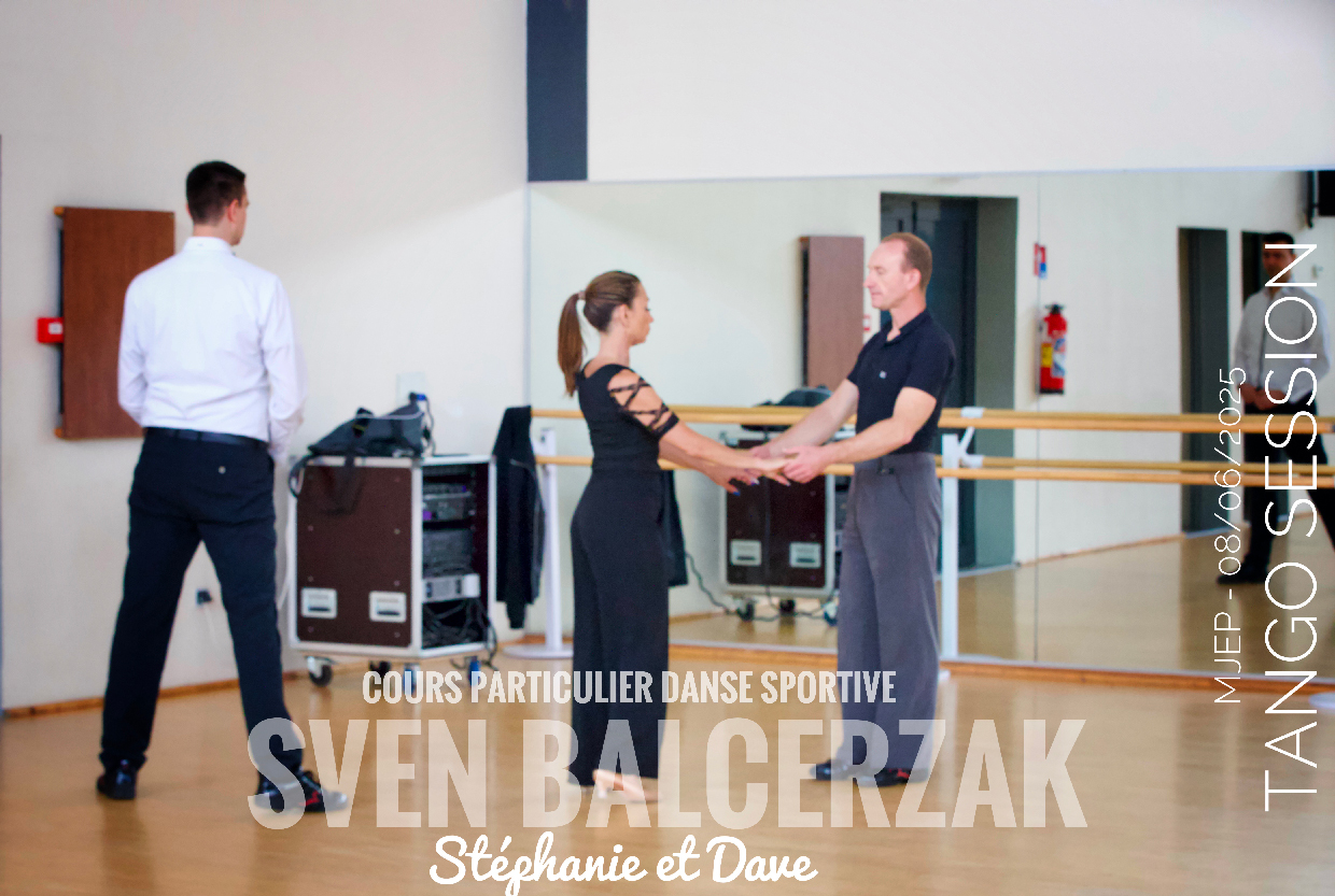 Ce jeudi 8 juin 2025, sur la piste de danse de la MJEP Danse, Sven BALCERZAK professeur de Danse Sportive a dispensé un cours particulier de Tango à Stéphanie et Dave, compétiteurs internationaux.
