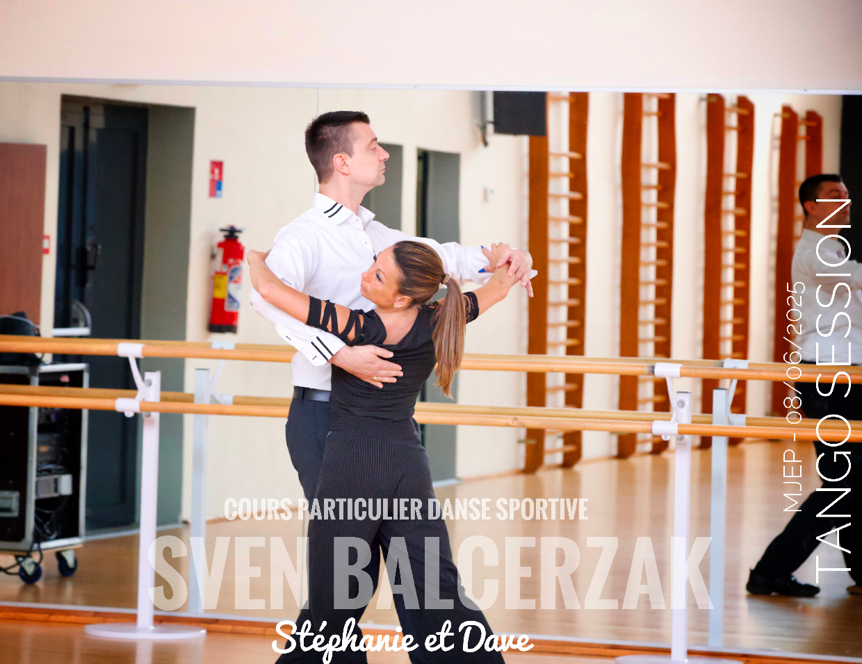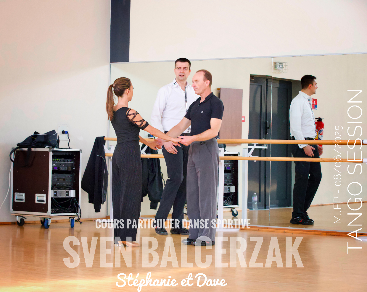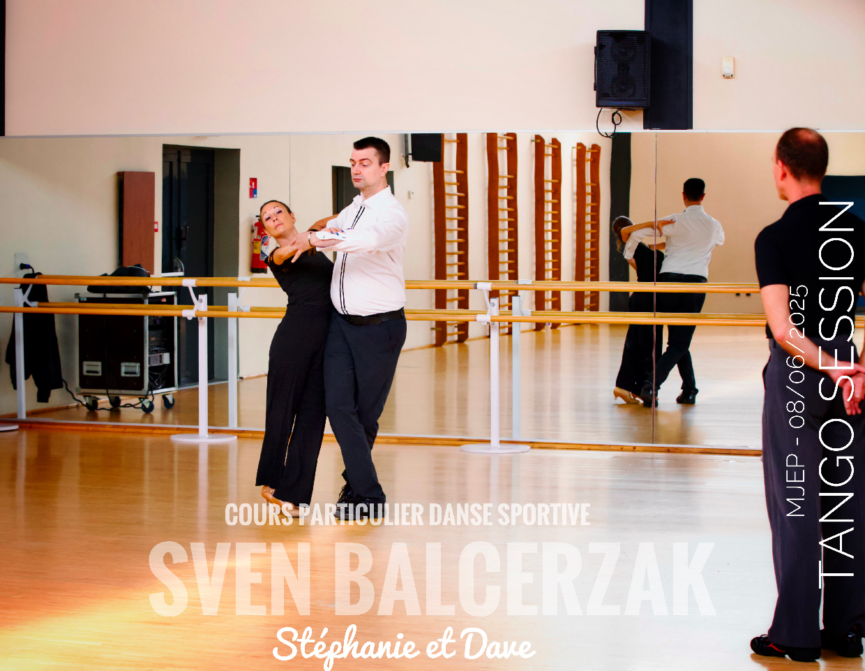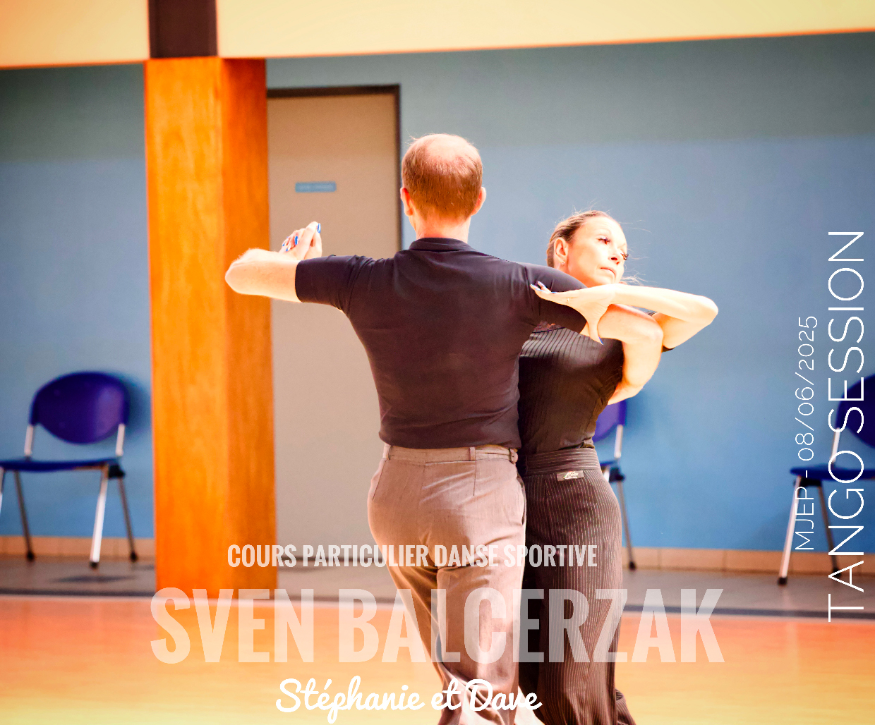 Ce jeudi 8 juin 2025, sur la piste de danse de la MJEP Danse, Sven BALCERZAK professeur de Danse Sportive a dispensé un cours particulier de Tango à Stéphanie et Dave, compétiteurs internationaux.