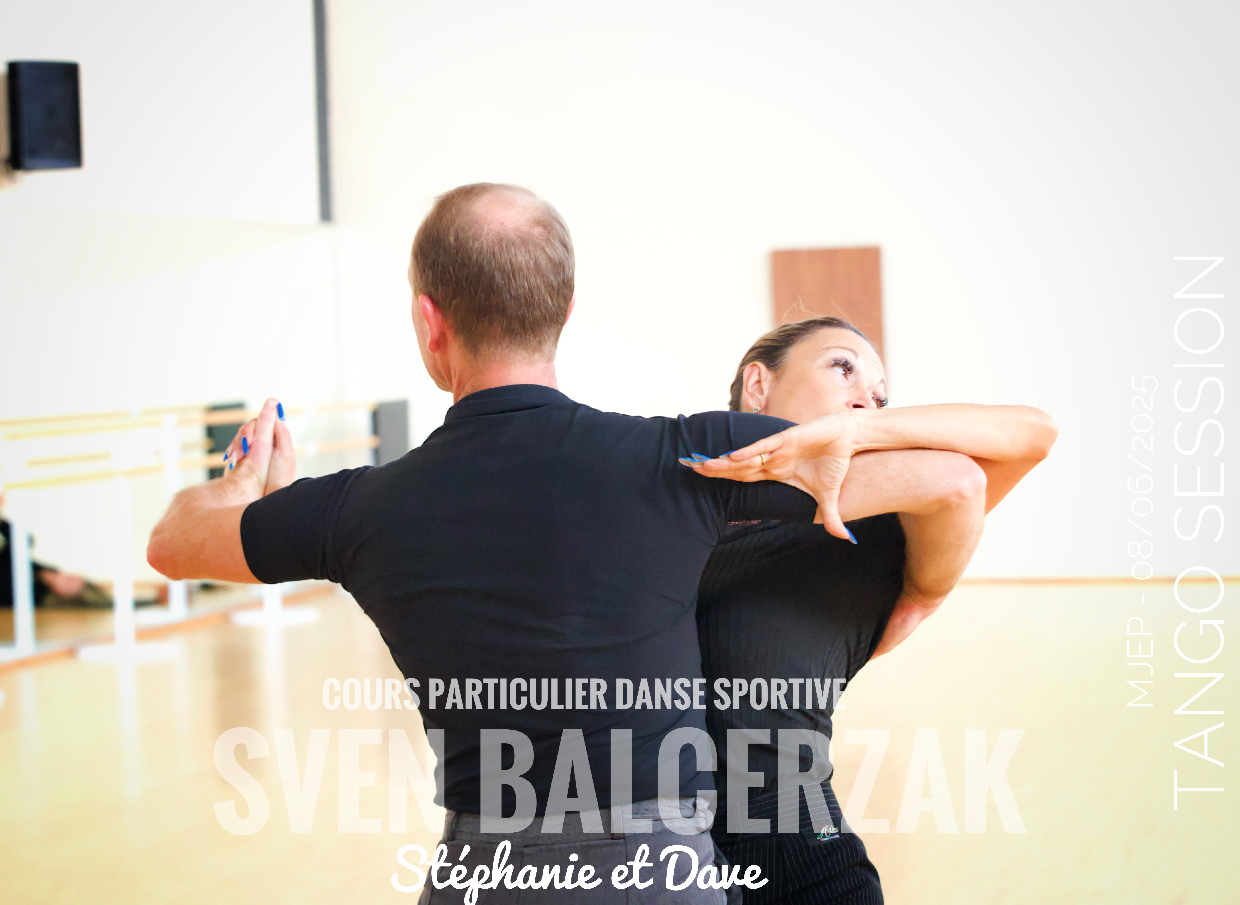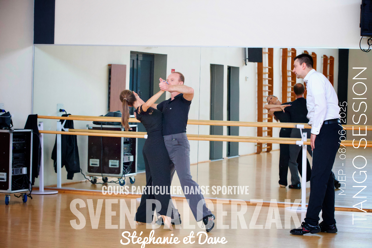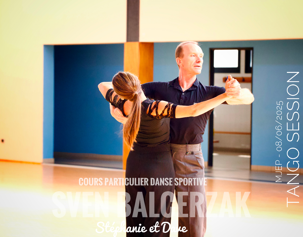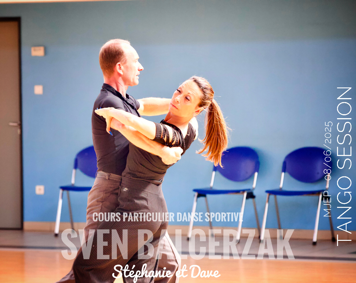Ce jeudi 8 juin 2025, sur la piste de danse de la MJEP Danse, Sven BALCERZAK professeur de Danse Sportive a dispensé un cours particulier de Tango à Stéphanie et Dave, compétiteurs internationaux.